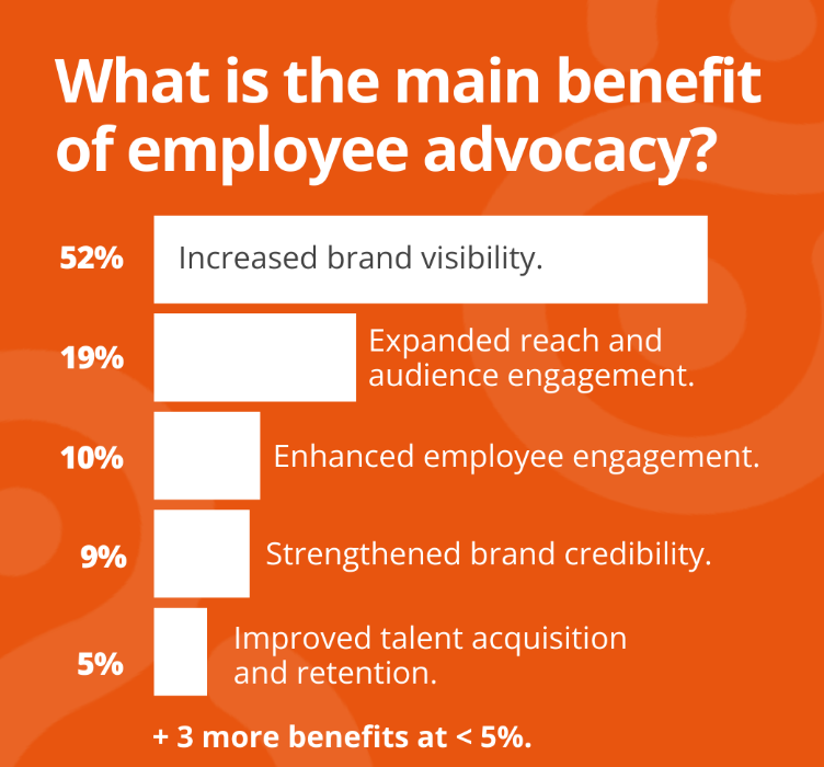 And the connection is clear: according to DSMN8’s 2025 Employee Advocacy Benchmark Report, 34% of organizations say the biggest impact of their advocacy programs is higher employee engagement. One way to fuel this advocacy is by creating engaging content in formats employees love to share, such as culture films, testimonials, or other effective B2B video types that highlight your workplace story in authentic ways.